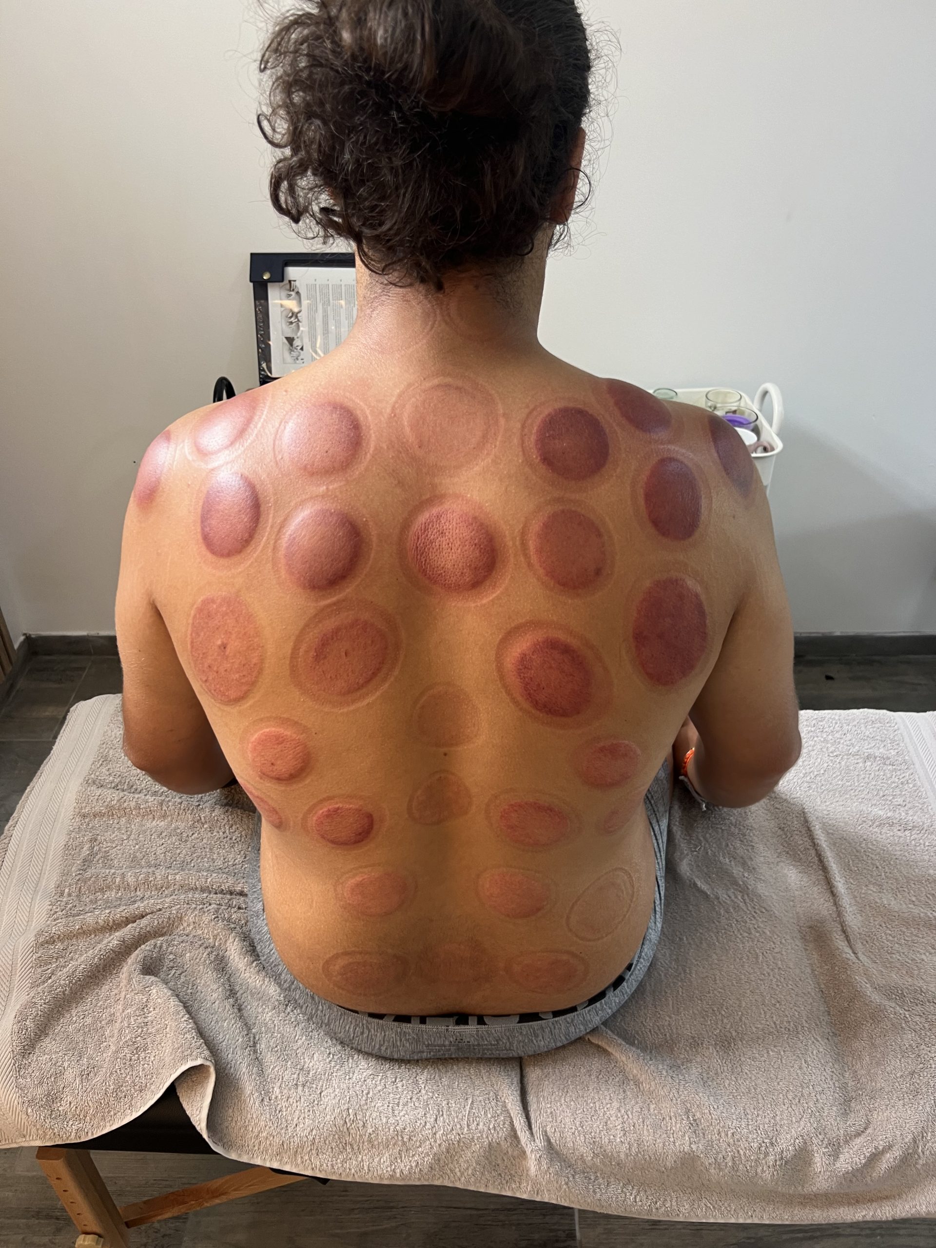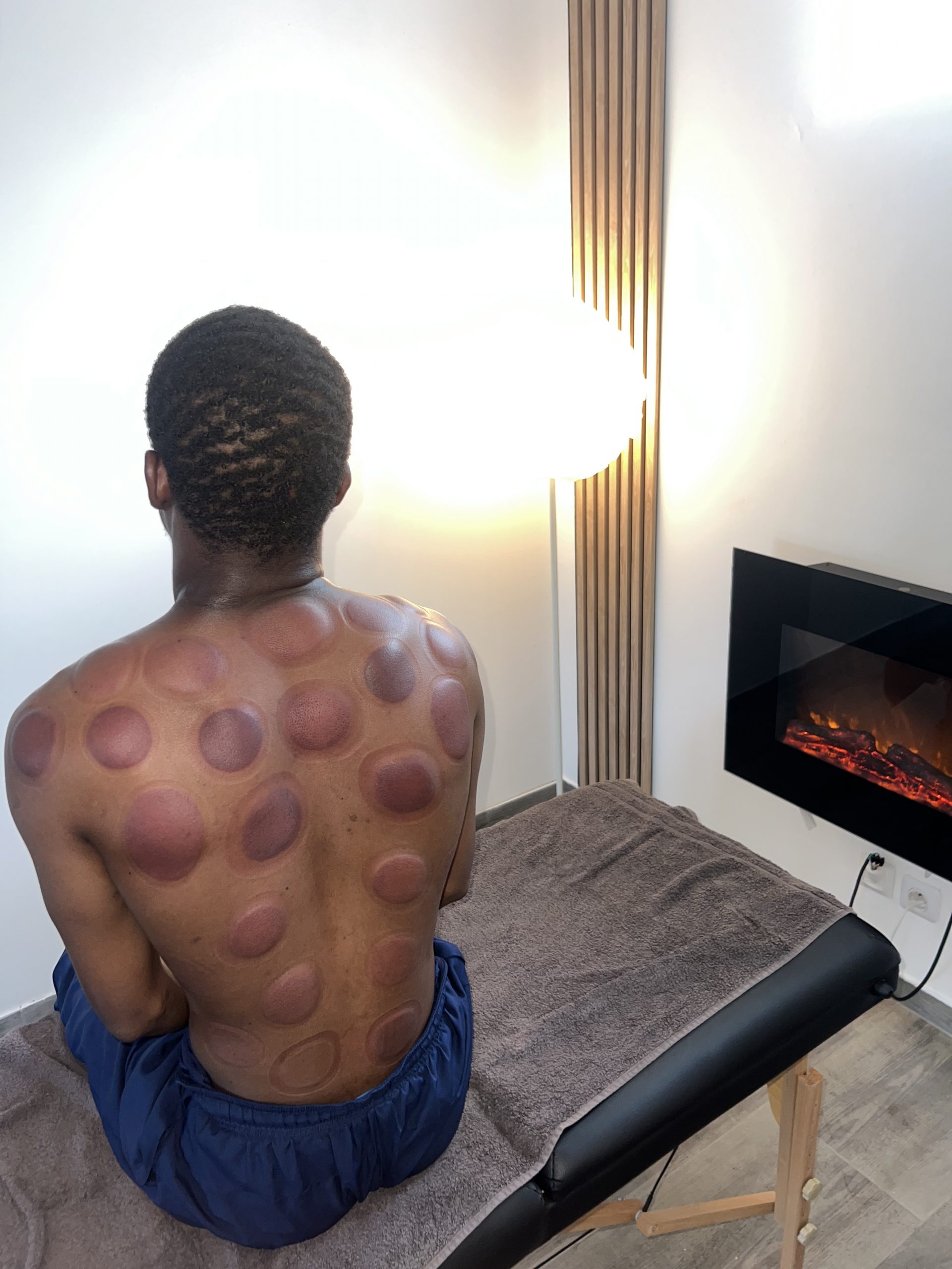 Découvrez nos séances de cupping en action. Grâce à cette méthode ancestrale, nous aidons nos clients à soulager leurs douleurs, à stimuler la circulation et à favoriser la détente profonde. Sur chaque photo, vous pouvez observer comment le cupping agit directement sur les zones ciblées.
